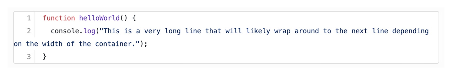 console.log("This is a very long line that will probably wrap around to the next line depending on the width of the container.");